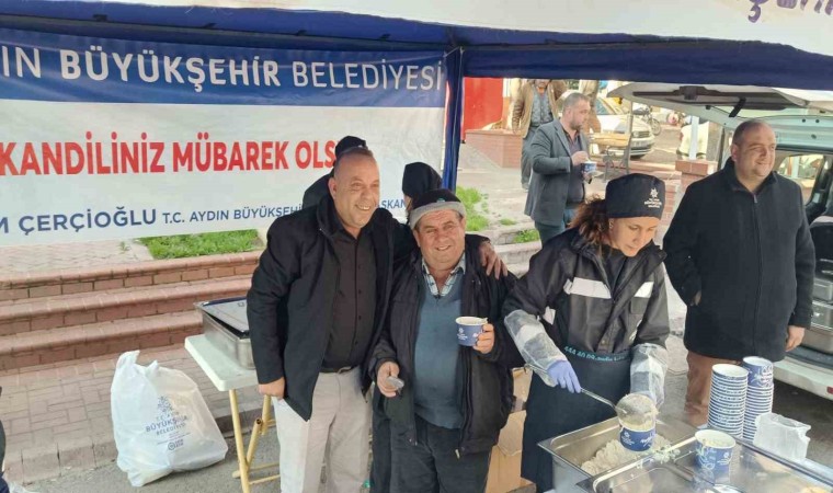 Aydın Büyükşehir Belediyesi Regaip Kandili dolayısıyla öğle namazı çıkışında Bozdoğan Çarşı Camii önünde pilav hayrı yaptı, pilav hayrına katılan CHP Bozdoğan Belediye Başkan Adayı Galip Özel, vatandaşlara pilav ikram etti.