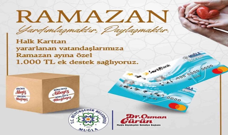 Sosyal belediyecilik alanında farklı proje ve desteklerle halkın yanında olan Muğla Büyükşehir Belediyesi Ramazan ayı nedeni ile Halk Kart desteğinden yararlanan vatandaşların hesabına ek bin TL yatırdı. Her ay düzenli olarak Halk Kart desteğini sürdüren Büyükşehir Belediyesi Ramazan ayında da vatandaşların yanında olmak için bu desteği hayata geçirdi.