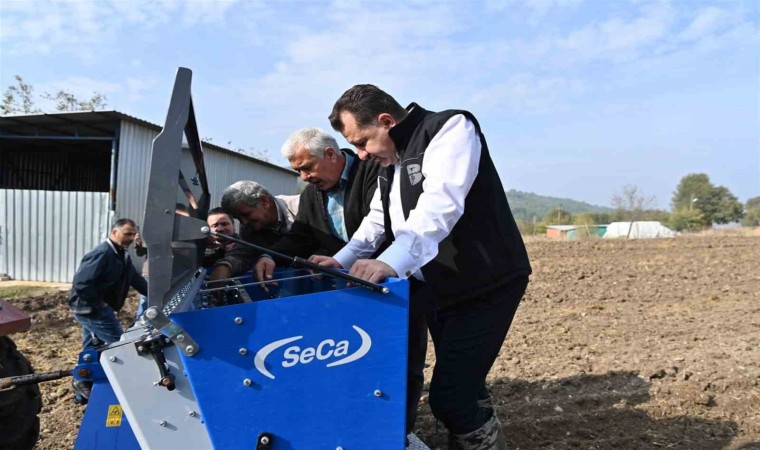 Kırsala yatırımlarını hız kesmeden sürdürdüklerini vurgulayan Başkan Yılmaz, “Geçtiğimiz günlerde 25 adet tohum eleme makinesini kırsal mahallelerimize dağıttık. Hem selektör makinesinin hem de sarımsak ekim makinesinin nasıl çalıştığını, üreticimize nasıl fayda sağladığını yerinde görelim istedik. Sarımsak ekim makinesi gelmeden önce 13 kadınımız bir günde bir dönümü zor bitiriyordu. Şimdi ise bir saatte sarımsak ekimi tamamlanıyor.