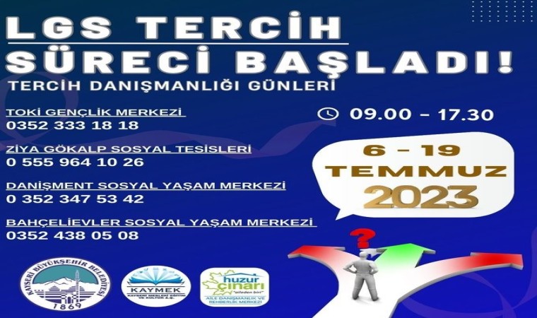 Kayseri Büyükşehir Belediyesi, öğrenci dostu hizmetlerine LGS tercih sürecinde de devam ediyor. Bu kapsamda LGS sınavı sonuçlarının açıklanmasının ardından başlayan Tercih Danışmanlığı Günleri, öğrencilerin doğru tercih yapmalarına yardımcı olmayı hedefliyor. Bu hizmet, 19 Temmuz'a kadar devam edecek.