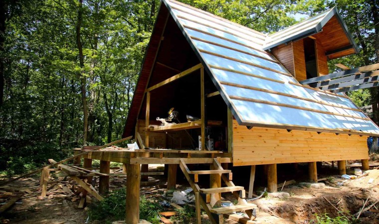 Sakarya Büyükşehir Belediyesi İl Ormanı Tabiat Parkı’nda inşası süratle devam eden bungalov otel projesi tabiatın incisi olacak.