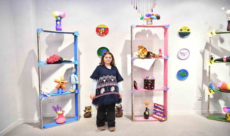 Sergide, geri dönüşüm malzemelerinden yapılan el sanatları ve resimlerin yanı sıra, öğrencilerin bilmekle alakalı ve fiziksel gelişimlerine katkı sağlamak amacıyla gerçekleştirilen çeşitli atölye çalışmalarının sonuçları da yer alıyor. Sergide, kırık çöp kovalarından yapılan puf koltuklar, eski bezlerden oyuncak bebekler, atık iplerden yapılan kapı süsleri gibi dikkat çekici eserlerin yanı sıra, resim, tuz seramiği, kolye, anahtarlık, kitap ayracı, bileklik, tespih yapımı gibi 500 farklı sanat ürünü olan, Besime Özderici Engelsiz Yaşam Merkezi ve ZİÇEV’de eğitim, tedavi gören öğrenciler ve aileleri tarafından, yüzde 60’ı geri dönüşümden üretilen eserler sergileniyor.