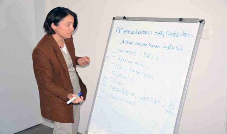 Kadınlara eğitim veren Büyükşehir Belediyesi Doktoru Tuba Çınar Olcay, “Meme kanserinin risk faktörlerini, kimlerin risk altında olduğunu, kendi kendine meme muayenesi yapmayı, muayene esnasında neler dikkat edilmesi gerektiğine değiniyoruz. En son aşamada da hangi durumlarda doktora başvurulması gerektiğini anlatıyoruz. Bu eğitimlerle erken tanının önemini kadınlarımıza anlatıyoruz. Bu şekilde hem hastalığın ilerlemesini geciktiriyoruz hem de tedaviyi kolaylaştırıyoruz” dedi.