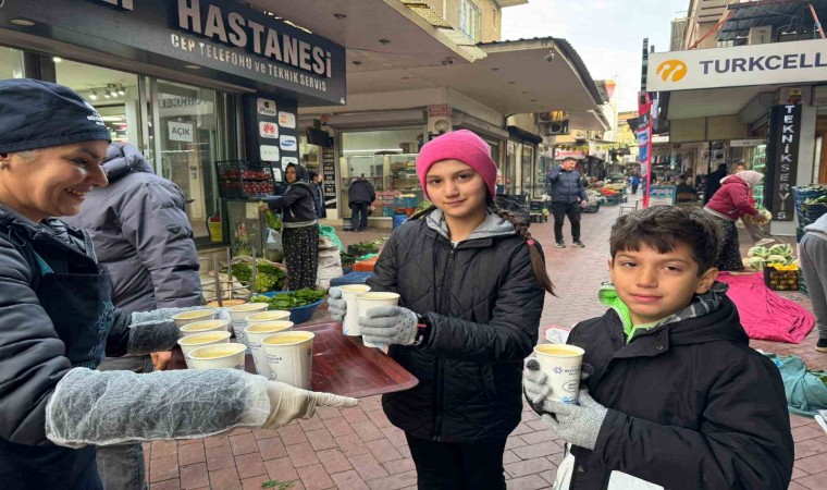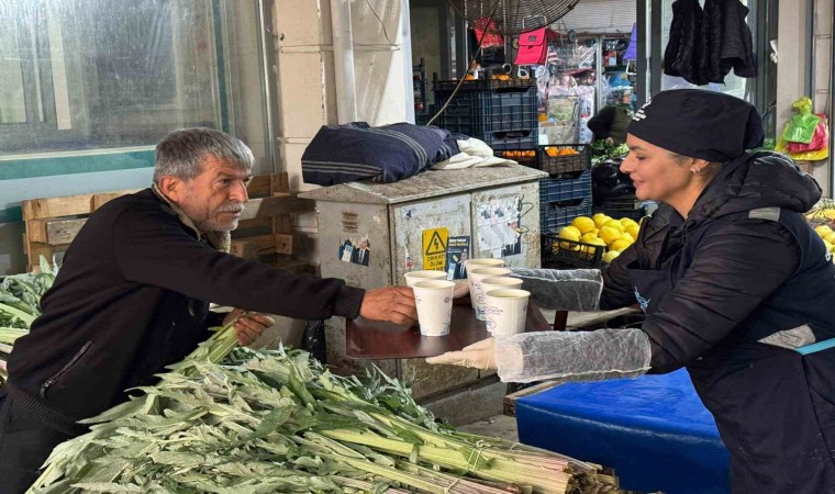 Aydın Büyükşehir Belediyesi’nin sıcak çorba ikramı bugün de 4 ilçe ve 11 farklı noktada on binden fazla pazarcı esnafı ve vatandaşa ulaştırıldı.