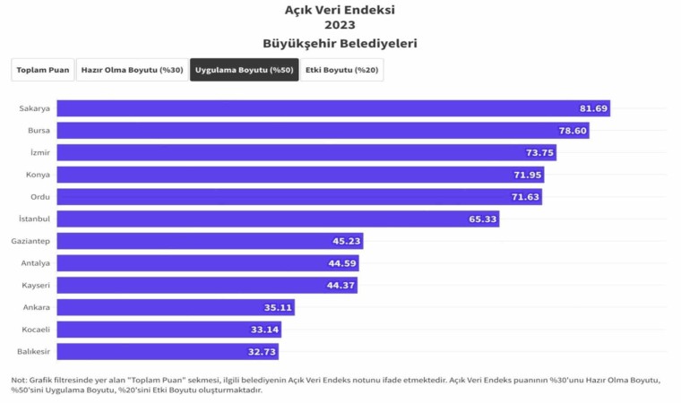 Sakarya Büyükşehir Belediyesi tarafından 4 ay önce hayata geçirilen Açık Veri Portalı, Yerel Yönetimler Açık Veri Endeksi değerlendirmesinde uygulama kategorisinde en yüksek puanı alarak birinci oldu.