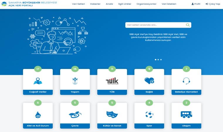 Sakarya’nın halkı ile belediye arasındaki iletişimi güçlendirmek, veriye dayalı karar alma süreçlerini desteklemek ve şehirdeki yaşam kalitesini artırmak amacıyla Büyükşehir Belediyesi tarafından hayata geçirilen Açık Veri Portalı, Açık Veri ve Teknoloji Derneği’nin her sene yaptığı Yerel Yönetimler Açık Veri Endeksi değerlendirmesinde uygulama kategorisinde en yüksek puanı alarak birinci oldu. 3 ayrı kategoride birçok büyükşehir ve ilçe belediyelerinin de yer aldığı değerlendirmelerde belediyenin 4 ay önce hayata geçirdiği Açık Veri Portalı, yazılım hususunda değerlendirildiği uygulama kategorisinde Bursa, İzmir, Konya gibi şehirleri geçerek 81,69 puanla birinci sırayı aldı. Şehirdeki birçok farklı veriyi halka erişilebilir hale getiren Açık Veri Portalı’nda coğrafi veriler, yaşam, sağlık, belediye hizmetleri, afet ve acil durum, çevre, kültür sanat, spor ve ulaşım gibi 12 farklı bilgi kategorisi yer alıyor. Sadece şehir sakinlerine değil, aynı zamanda geliştiricilere, araştırmacılara ve diğer paydaşlara da kapılarını açan Açık Veri Portalı, Sakarya’nın verilerini kullanarak yeni uygulamalar geliştirmek, araştırmalar yapmak, şehrin gelecekteki projelerini daha da iyileştirmek, şehir sakinlerinin katılımını teşvik etmek ve şehirdeki yaşam kalitesini artırmak gibi birçok fırsat sunuyor.