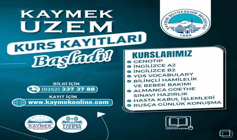 Gençlerin bilgili, donanımlı, kendini geliştirmiş ve özgüvenleri yüksek bireyler olmasını isteyen ve bu istikamette çalışmalar gerçekleştiren Dr. Memduh Büyükkılıç’ın başkanlığındaki Büyükşehir Belediyesi, Kayseri Mesleki Eğitim ve Kültür A.Ş.’nin (KAYMEK) uzaktan eğitim imkânı sunan birimi UZEM, birbirinden farklı ve hayata dair pek çok konuda kurslarının kayıtlarını almaya başladı.