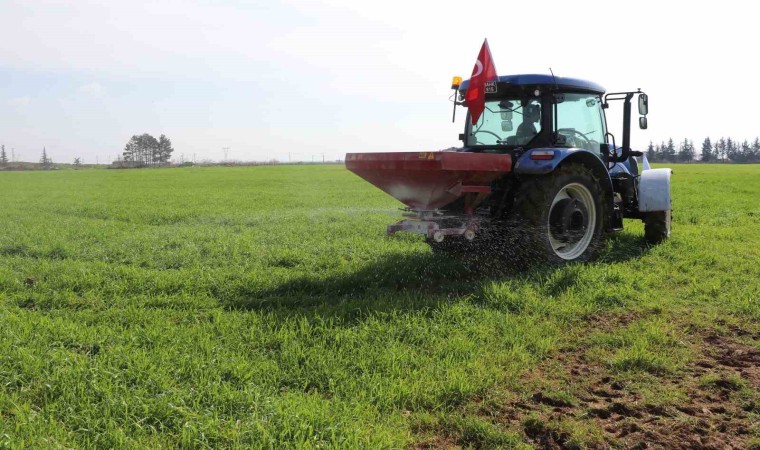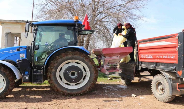 Şanlıurfa Büyükşehir Belediyesi Tarımsal Hizmetler Daire Başkanlığı 250 dekarlık alanda ektiği buğdayın sulama ve ilaçlama çalışmalarının yanı sıra gübreleme işlemini de gerçekleştirdi.