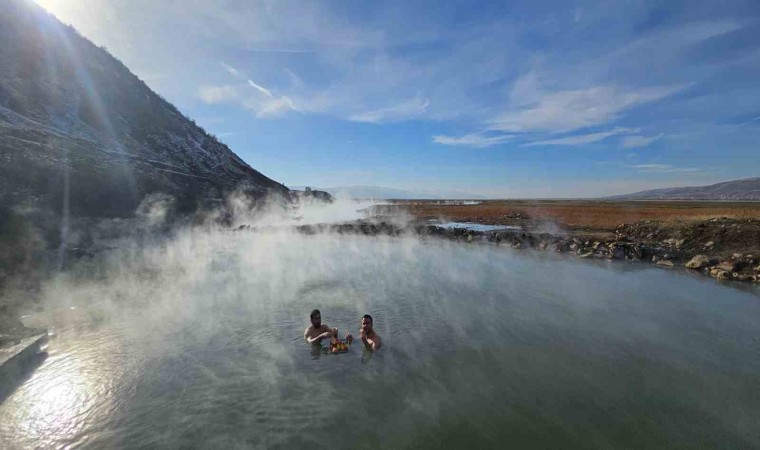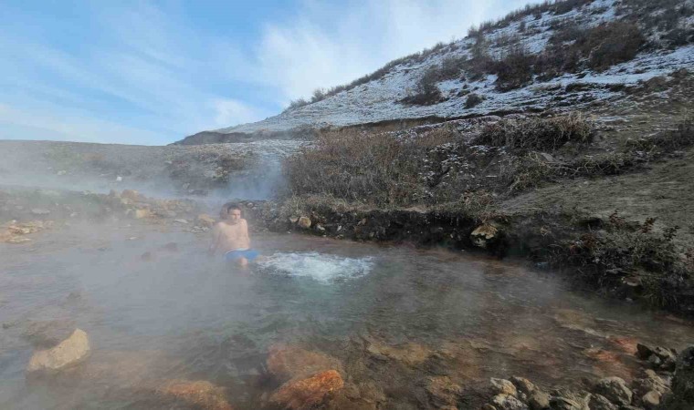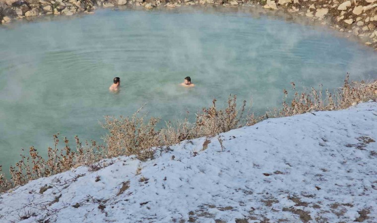 Hava sıcaklığının eksi 15-20 derece olduğu bölgede kaplıca suyunun 40 derecelerde olduğunu kaydeden Tüzün, “Dışarısı buz gibi ancak kaplıcanın içi sıcacık. Dışarda beyaz kar örtüsü var. Ama biz burada bu mevsimde yüzme keyfi yaşayabiliyorum. Bu büyük bir nimet. Herkese tavsiye ediyorum” dedi.
