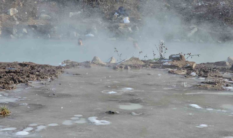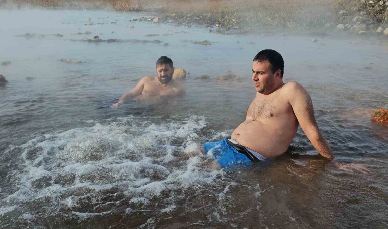 Bitlis’in Güroymak ilçende bulunan doğal kaplıcalara akın eden vatandaşlar kış mevsiminde dondurucu soğukta kaplıca keyfi yaşıyor.