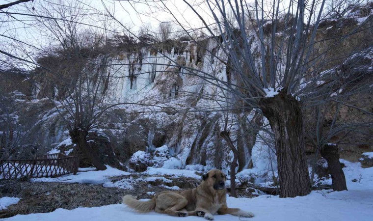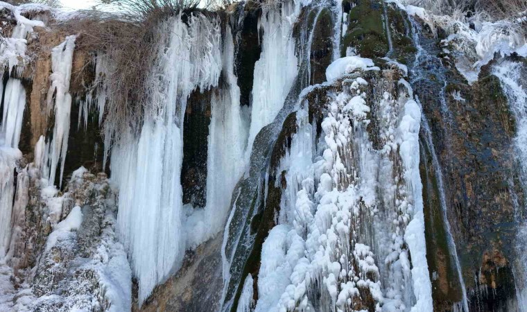 Şelalede uzunluğu 2 metreyi bulan buz sarkıtları, kartpostallık görüntüler oluşturdu.