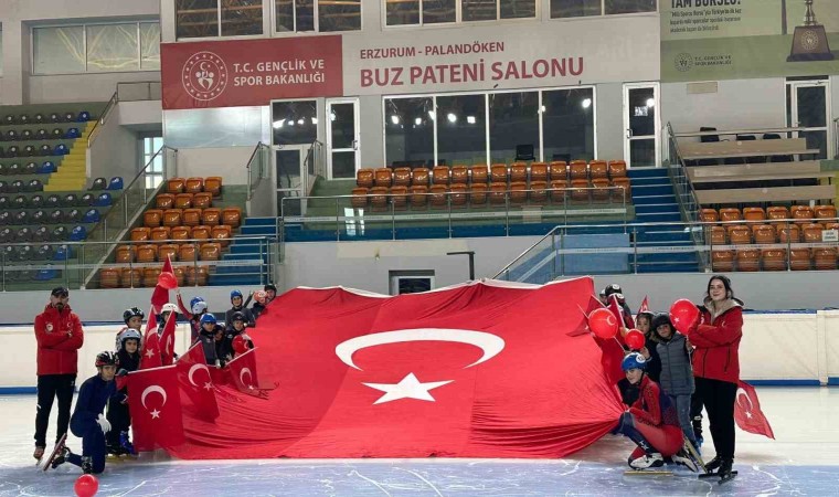 Palandöken Buz Pateni Salonunda düzenlenen Cumhuriyet Bayramı kutlaması renkli görüntülere sahne oldu.