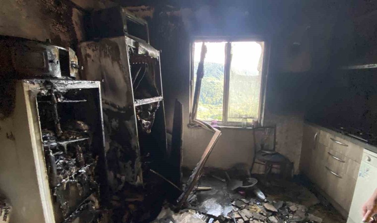 Zonguldak’ta buzdolabından çıkan yangın tek katlı evi kullanılmaz hale getirdi.