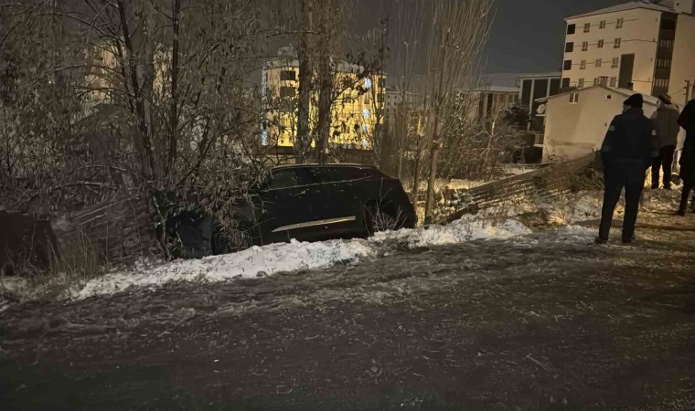 Sivas’ta buzlanan yolda kayan otomobil, müstakil evin bahçesine düştü. Kazada sürücü hafif şekilde yaralandı.