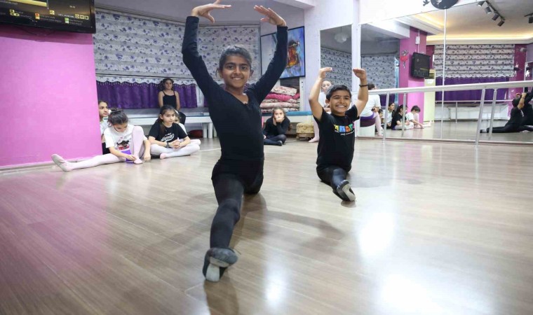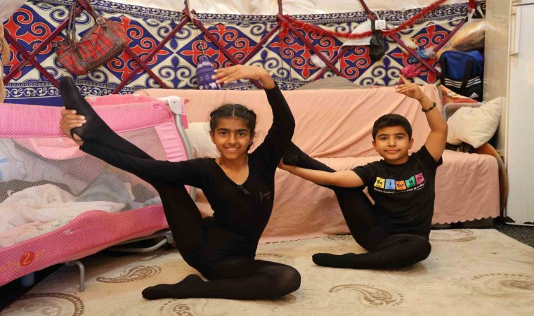 Hatay’da depremde evleri yıkılan ve hayatlarını aileleriyle birlikte Kırgız çadırında sürdüren Zeynep Melek ve Ali Yusuf, asrın felaketinin yaşattığı stresi ve sıkıntıyı bale yaparak atlatıyorlar.