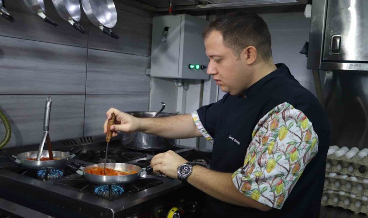 Pazar günleri hariç haftanın 6 günü menemen yaptıklarını belirten Artagan, “Menemenin kaymaklı olması sebebiyle gelmiş olduğu bir kıvam var. Bir kalıp haline geliyor. Tavayı ters çevirsek bile menemen tavadan ayrılıp yere düşmüyor. Ben o yüzden bu menemene ‘uçan, kaçan, takla atan menemen’ diyorum. Fakat içerisine ekmek girdiği zaman yumuşak bir kıvamda olduğu anlaşılıyor. İçerisinde tarifine özel bir kaymağı ile beraber orta yağlı kaşar peyniri var. Menemende ‘çakallı menemen’ en iyisi diye bilinir; ama en iyisini Giritliler yapar bir de kaymaklı yapar” dedi.