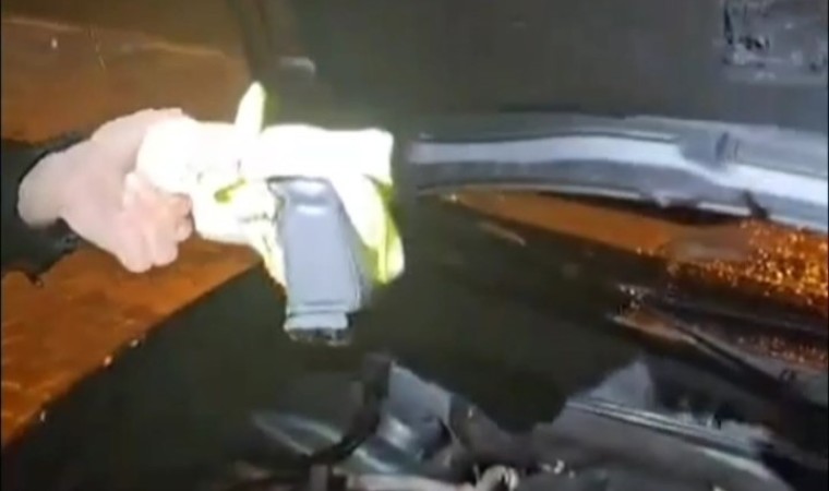 Siren ve çakar sistemi tespit edilen araçta arama yapan ekipler, cop, GPS takip cihazı, kaput keçesine gizlenmiş ruhsatsız tabanca ve 15 mermi ele geçirdi.