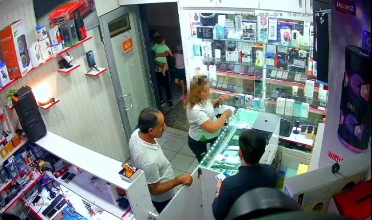 Olay, Kemal Güneş Caddesinde meydana geldi. İsmi öğrenilemeyen bir kadın, telefon mağazasına girip telefonunu satmak istedi. İş yeri sahibi telefonu satın alamayacağını belirterek, kadının talebini reddetti. Defalarca telefonunu uzatarak satmak isteyen kadın bir süre sonra dükkanda taşkınlık yaparak, diğer müşterilerin araya girmesine rağmen yöneldiği cam vitrinde bulunan bir telefonu alarak dışarıya çıktı. İş yeri sahibi kadının çaldığı telefonu fark edip geri almaya çalıştı. O sırada mağaza sahibi, çalınan telefonu geri almaya çalışırken kadının bir anda soyunmasıyla neye uğradığını şaşırdı. O anlar iş yerinin güvenlik kamerasına saniye saniye yansıdı.