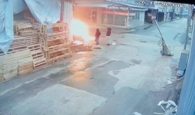Olay anı bir işyerinin güvenlik kameralarına saniye saniye yansıdı.