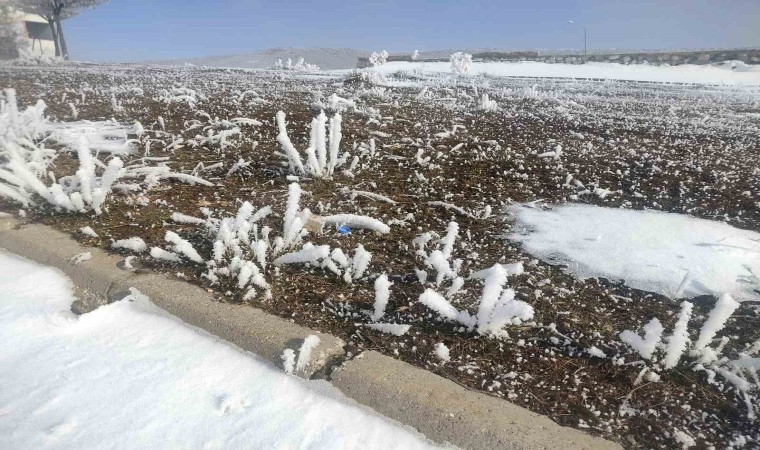Van’ın Çaldıran ilçesinde gece hava sıcaklığının eksi 12 dereceye düşmesi, hayatı durma noktasına getirdi.