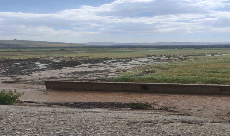 Van’ın Çaldıran ilçesinde etkili olan sağanak yağış sonucu meydana gelen selden dolayı ekili alanlar zarar gördü.