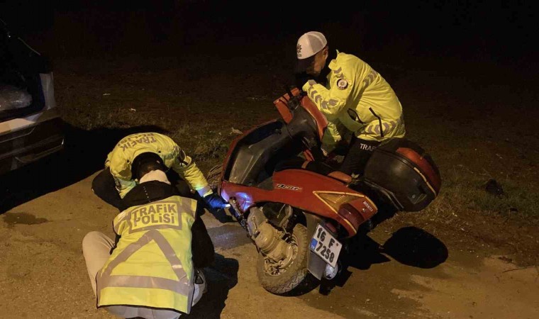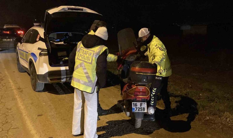 İnegöl Emniyet Müdürlüğü Trafik Büro Amirliği ekipleri, Ahmet Türkel Çevre Yolu üzerinde sürücülere yönelik uygulama yaptı. Ekipler, uygulama noktasına gelirken motosikleti durdurup yol kenarında bekleyen sürücüyü fark etti. Sürücüyü yakalayan polis ekipleri, motosikleti inceledi. İnceleme sonucu motosikletin çalıntı olduğu ve plakanın da başka bir motosikletten çalındığı tespit edildi. Motosikleti başkasından aldığını söyleyen sürücü Cafer T. (59), ifadesi alınmak üzere karakola götürüldü. Sürücüye başka bir araca ait plakayı takmaktan 32 bin 170 TL, yetersiz ehliyetle araç kullanmaktan 6 bin bin 439 TL, kask kullanmamaktan 690 TL olmak üzere toplam 39 bin 299 TL cezai işlem uygulandı.