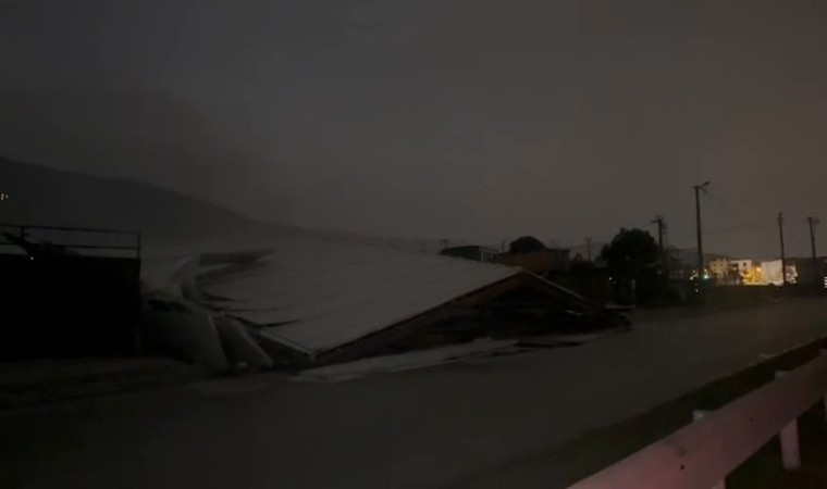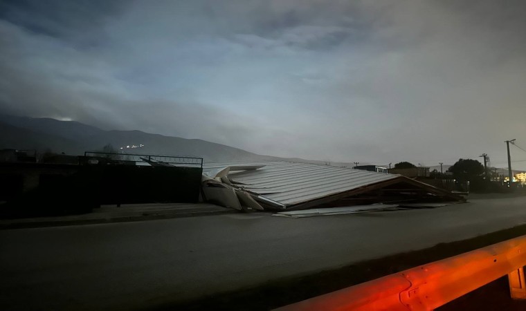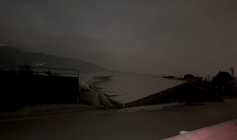 Bursa’da gece saatlerinde etkisini iyice artıran ve saatte 100 kilometre hıza ulaşan şiddetli lodos, hayatı olumsuz etkiledi. Merkez Yıldırım ilçesi Hacivat Mahallesi 11 Eylül Bulvarı üzerinde bulunan cam fabrikasına ait malzemelerin bulunduğu deponun çatısı uçtu. Çatının gece uçması, büyük bir faciayı engellerken, depoda maddi hasar meydana geldi.