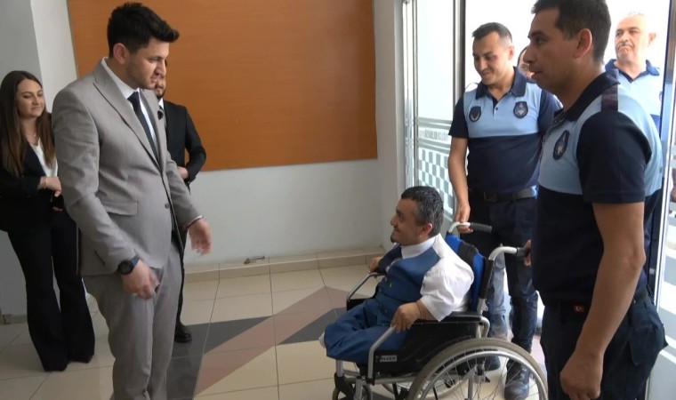 Düzce(İHA) – Düzce’nin Yığılca ilçesinde cam kemik hastası olan bedensel engelli 30 yaşındaki Esat Balcı, belediye meclis üyesi adayı olarak girdiği seçimleri kazandı. Mazbatasını alan Balcı’ya tekerlekli sandalyesi ile gittiği belediye binasında asansör ve rampa olmaması nedeniyle merdivenleri çıkamayınca zabıtalar yardımcı oldu.