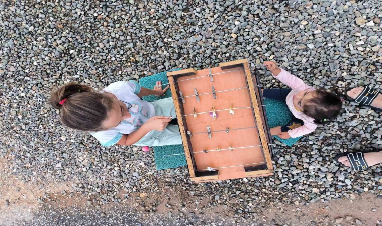 Malatya’nın Doğanşehir ilçesinde çamaşır mandalı ve şişten langırt yapan 11 yaşında kız çocuğu, kardeşleriyle oyun oynayarak keyifli vakit geçiriyor.