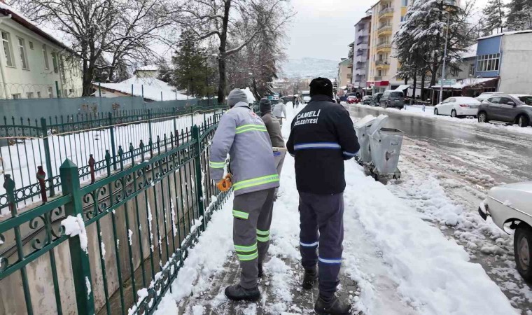 Beklenen kar yağışı nedeniyle her hangi bir mağduriyet yaşanmaması adına gerekli önlemler alan Çameli Belediyesi ekipleri, kırsal mahallerdeki çalışmalarının ardından ilçe merkezinde de kar temizliği çalışmaları tamamlandı. Denizli Büyükşehir Belediyesi Fen İşleri Müdürlüğü ile Çameli Belediyesi Fen İşleri Müdürlüğü ekipleri, ilçe merkezindeki yol ve kaldırımlarda kar temizliği çalışması gerçekleştirdi. Yoğun kar yağışının ardından kaldırımlar ve yol cepleri titizlikle temizlendi. Çalışmalar sırasında, vatandaşların kayma riski yaşamaması için kaldırımlardaki karlar özenle temizlenerek don olaylarına karşı önlemler alındı.