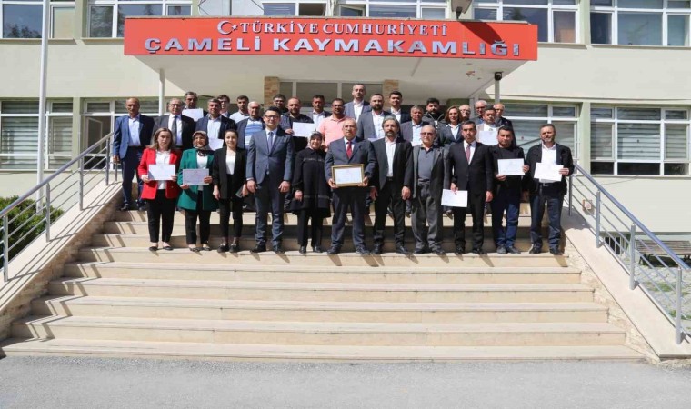 DENİZLİ(İHA) – Denizli’nin Çameli ilçesinde üçüncü kez seçimi kazanan AK Partili Belediye Başkanı Cengiz Arslan, 2024 yılı mazbatasını eşi ve meclis üyeleri ile birlikte aldı.