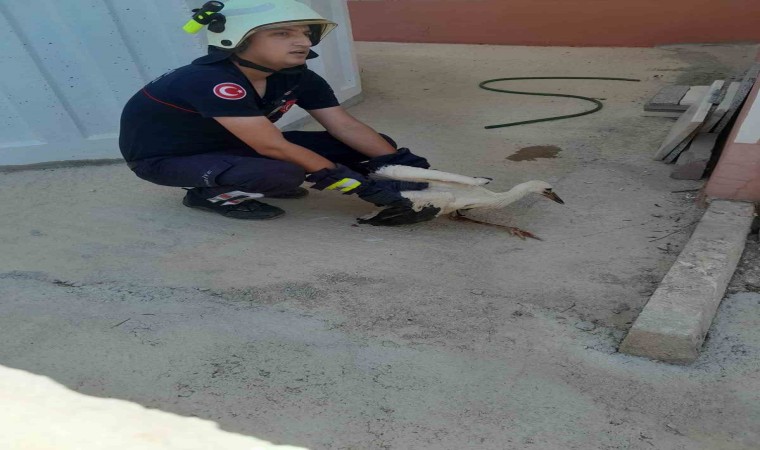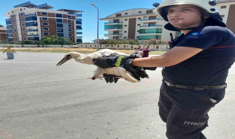 Antalya’nın Serik ilçesinde cami kubbesinde yaşayan leylek ailesinden bir ayağı olmadığı için uçamayan yavru leylek, itfaiye ekipleri tarafından kurtarıldı.