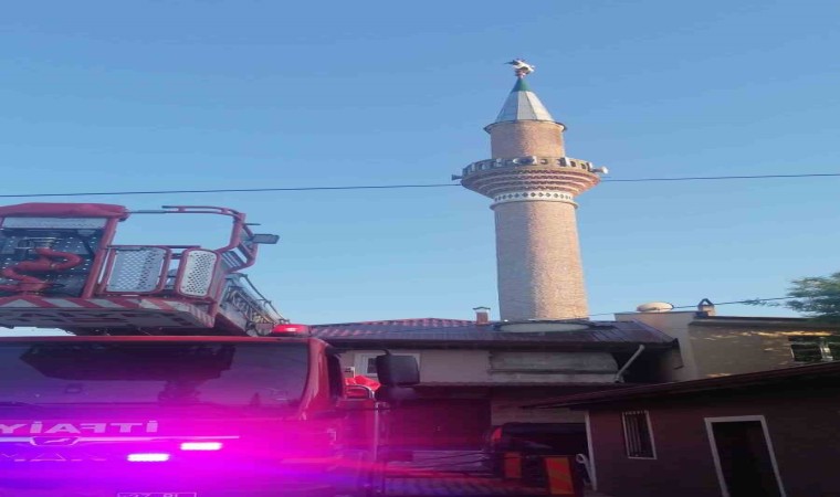 Kastamonu’da minarendeki aleme takılan leylek itfaiye ekipleri tarafından kurtarıldı.