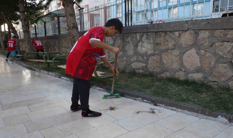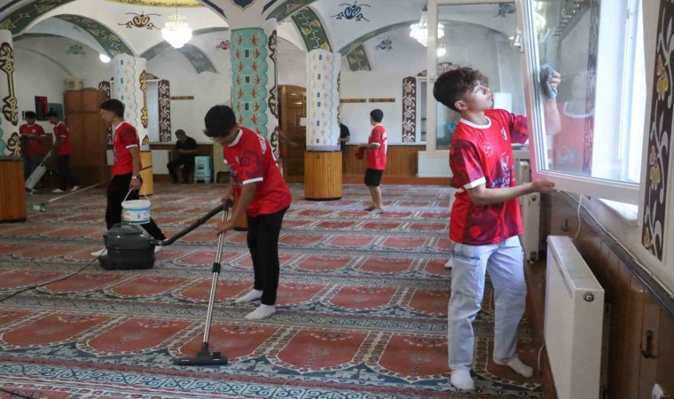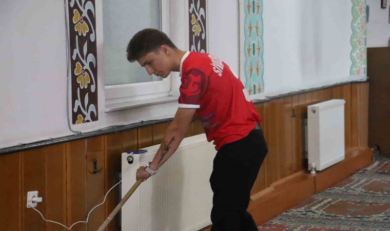 Sivas’ta genç sporcular, ünlü futbolcu Mesut Özil’in sosyal medyada paylaşılan cami temizleme videosundan ilham alarak örnek bir çalışmaya imza attı.