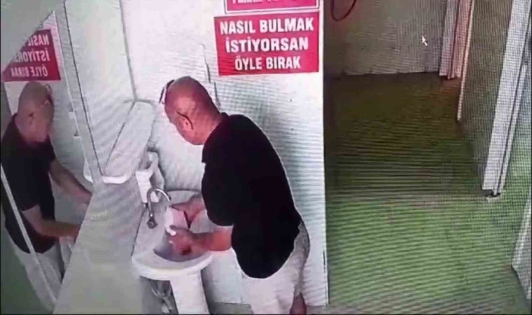 Olay, Suluova Toki Camii’nde meydana geldi. Caminin tuvaletine giren bir şahıs ellerini temizledi. Bir süre dolaştıktan sonra gözüne kestirdiği sabunluğun dışını yıkadı. Sonra da sabunluğu beline sokup üstünü elbisesiyle kapattı. Dışarı çıkan şahıs, son model otomobile binerek uzaklaştı. Cami ve çevresinin 24 saat kamerayla izlendiğinin belirtildiği levhayı da fark etmeyen şahsın o anları saniye saniye kaydedildi.