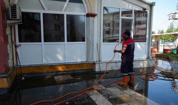 Düzce’de her bayram öncesi başlatılan cami temizleme çalışmaları sürüyor. Temizlik İşleri Müdürlüğü tarafından yapılan çalışmalarla şehir merkezinde bulunan tüm camiler bayram öncesinde temizlenmeye başladı. Mahalle mahalle planlanan temizlik çalışmaları çerçevesinde 63 mahalle bayram namazına hazır hale getirilecek.