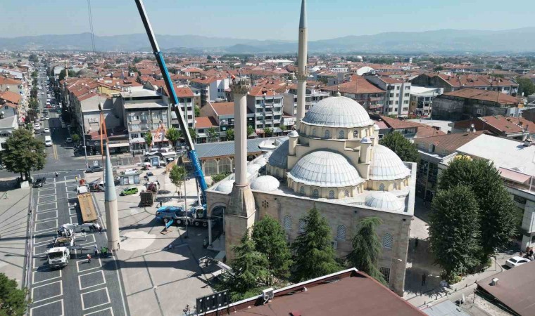 Düzce Belediye Başkanı Dr. Faruk Özlü’nün girişimleri ile başlatılan Kent Meydanı Projesi’de cami-meydan-çarşı konsepti Cedidiye meydanına yakışır şekilde sürüyor. Bedesten tarzı mimari ile yapılan dükkanların farklı bir görsellik kattığı meydanda bölgenin tarihi hafızası konumunda bulunan Cedidiye Camii’nin restorasyonuna yönelik çalışmalar hız kazandı. İlk etapta vakıflar tarafından yapılması öngörülen projenin çeşitli sebeplerden ötürü hayata geçirilememesi ve ertelenmesi üzerine inisiyatif alan Başkan Özlü, iş insanı Burhan Özdemir ile protokol imzalayarak cami ve minarelere yönelik yenileme çalışmalarının hızlanması noktasında önemli bir adım atmıştı. Geçtiğimiz haftalarda camii dış cephesinin tarihi yapıların yenilenmesinde yaygın olarak kullanılan ‘kumlama’ tekniği ile başlatılan ve hassas şekilde yürütülerek tamamlanan temizlik işlemlerinin ardından bu sabah itibariyle minarelerin kaldırılmasına başlandı. Ekipler, çevre güvenliğini alarak gerçekleştirdikleri kaldırma işlemlerini sürdürürken, caminin aslına uygun yapı malzemesi kullanılarak yapılacak olan minarelerde en kısa süre içinde tamamlanarak yerine yerleştirilecek.