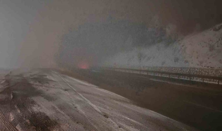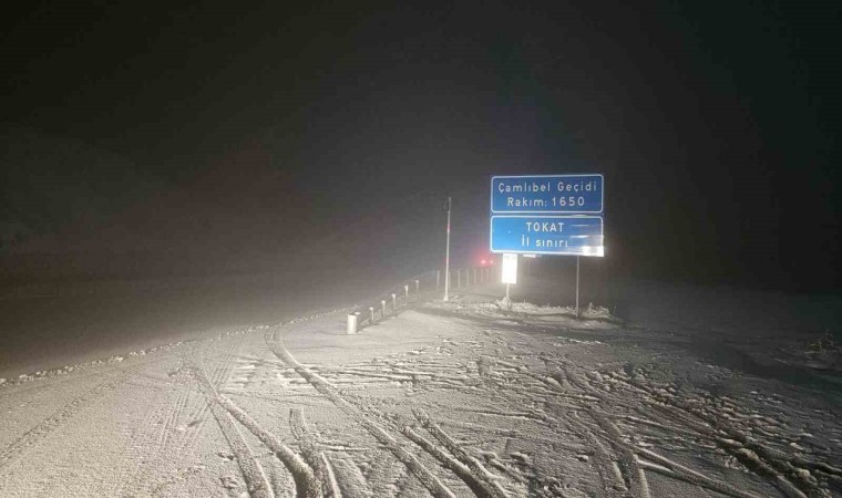Tokat-Sivas il sınırında bulunan Çamlıbel Geçidi’nde kar yağışı ve sis etkili oldu.