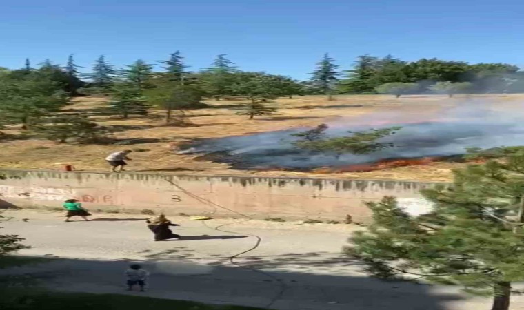Eskişehir’de çamlık bir arazide çıkan ve ilk müdahaleyi vatandaşların evlerinden çektikleri hortumla yaptığı yangın büyümeden söndürüldü.