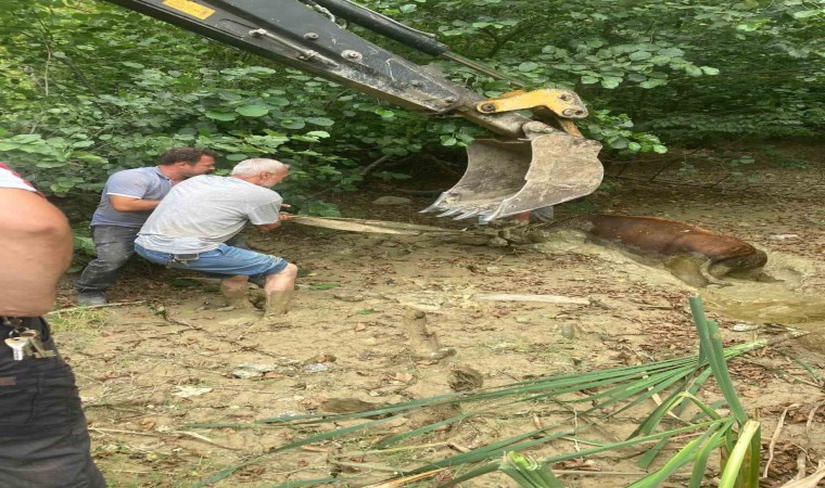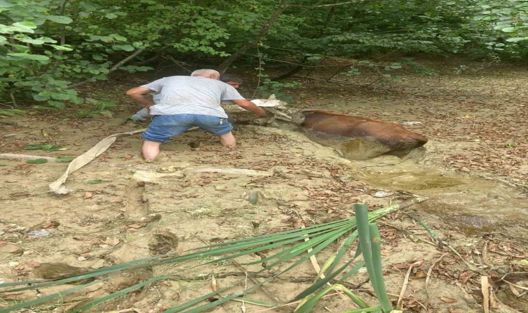 Bartın’ın Hasankadı beldesinde çamura saplanan ineği belediye ekipleri kurtardı.