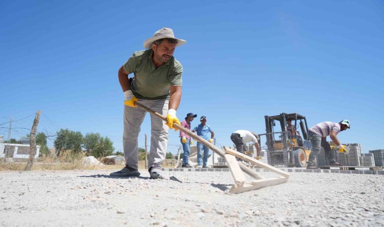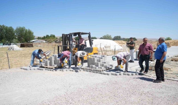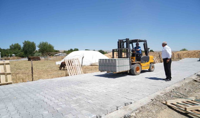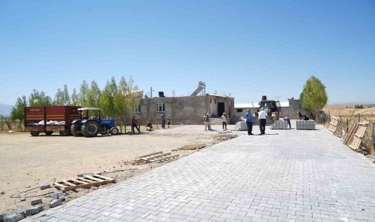 Muş’un Kırköy Belediyesi tarafından başlatılan yol yapım çalışmaları çerçevesinde mahalle yollarına kilitli parke taşı döşendi.