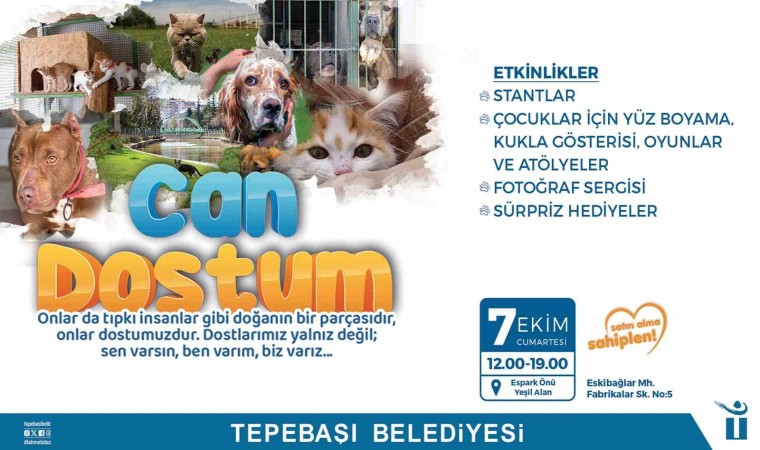 Tepebaşı Belediyesi sokak hayvanlarının yaşam şartlarını iyileştirebilmek adına örnek çalışmalara devam ederken, kentteki sivil toplum kuruluşları ve gönüllüler ile iş birliği yapmayı da sürdürüyor. Bu çerçevede ‘Satın alma sahiplen’ sloganı ile hayata geçirilen “Can Dostum” projesi çerçevesinde, sokak hayvanlarına karşı duyarlılık oluşturmak, sokaktaki canlara dikkat çekmek amacıyla birbirinden renkli etkinlikler gerçekleştirilecek. “Onlar da tıpkı insanlar gibi doğanın bir parçasıdır, onlar dostumuzdur. Dostlarımız yalnız değil; sen varsın, ben varım, biz varız” sloganı ile düzenlenecek etkinlik Atila Özer Karikatürlü Ev yanında 7 Ekim Cumartesi günü saat 12.00-19.00 saatleri arasında gerçekleştirilecek.