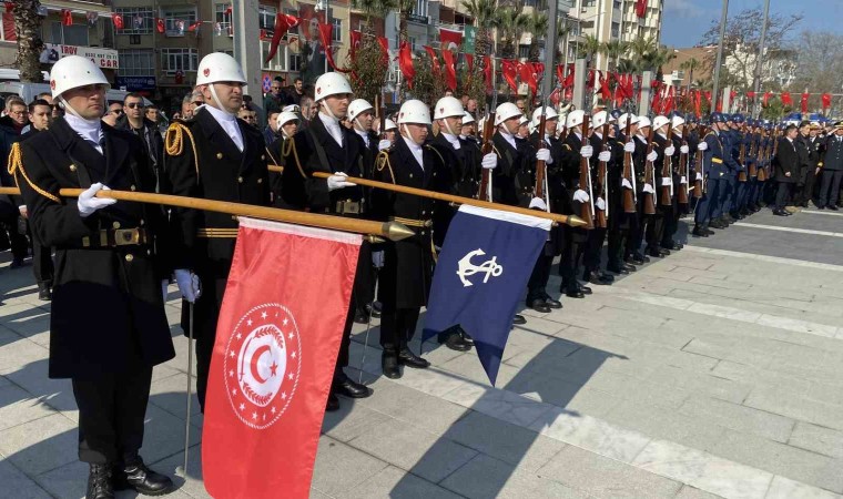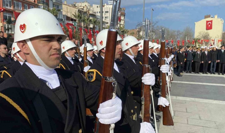 Çanakkale Deniz Zaferi’nin 109’uncu yıl dönümü nedeniyle kentte büyük coşku ve heyecan yaşandı. Cumhuriyet Meydanı’nda düzenlenen ilk törende, Anafartalar Kahramanı Mustafa Kemal Atatürk’ün anıtına çelenk sunumu gerçekleşti. Türkiye Büyük Millet Meclisi (TBMM) tarafından 1994 yılında, 253 bin şehit adına, 3972 Sayılı Kanunla, Çanakkale’ye verilen ve üzerinde ’Çanakkale Geçilmez’ yazan altın madalya, Cumhuriyet Meydanı’ndaki törende Milli Savunma Bakanı Yaşar Güler, Vali İlhami Aktaş ve Çanakkale Belediye Başkan Ülgür Gökhan tarafından Türk bayrağına takıldı. Şehitleri selamlamak adına 21 pare top atışı yapıldı.