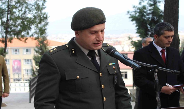Günün anlam ve önemini belirten konuşmayı yapan Üsteğmen Ümit Seyfettin Özden; “Asil milletimizin varoluşunun, birlik ve beraberliğin ölümsüz sembolleri olan şehitlerimizin manevi varlıkları, tarih ve millet bilincimizin korunmasında ve sahip olduğumuz milli ve manevi değerlerimizin aktarılmasında en değerli hazinedir. Bu nedenle şehitlerimizin aziz hatıraları nesilden nesile sonsuza dek yaşatılacaktır. Aziz şehitlerimizin yüreklerimizde yaktıkları ateş, vatanımıza yönelecek her türlü tehdide karşı vereceğimiz müdahalelere, sarsılmaz inancımıza, tükenmez gücümüze sonsuz kaynak teşkil etmektedir. Ülkemizin birliğine göz diken düşmanlarımızın ve terör örgütlerinin kutsal vatan toprakları ile ilgili tüm tehditleri dün olduğu gibi bugün de asil Türk milletinin bağrından çıkmış aziz şehitlerimizden ve kahraman gazilerimizden ilham olan şanlı ordumuz tarafından bertaraf edilecektir. Türk vatanının kutsallığını, Türk milletinin namusunu ve Türk bayrağının şanını, canından üstün tutan aziz şehitlerimiz, sizi bizlerden ayıran ölüm, size olan bağlılığımızı asla koparmayacak, kutsal emanetiniz olan Türk vatanı ilelebet hür kalacaktır. Sizlere söz veriyoruz ki, Çanakkale’ler sonsuza dek geçilmeyecek. Dünya var oldukça bu topraklar Türk yurdu olmaya devam edecektir” dedi.