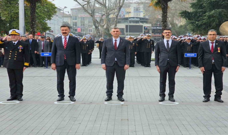 Gölcük Kaymakamı Müfit Gültekin, Gölcük Deniz Ana Üs ve Garnizon Komutanı Tuğamiral Ali Tuna Baysal, Gölcük Belediye Başkanı Ali Yıldırım Sezer ile Türkiye Harp Malulü Gaziler, Şehit Dul ve Yetimleri Derneği Gölcük Temsilciliği Başkanı Mehmet Uğur’un Atatürk anıtına çelenk sunmasıyla başlayan tören, askeri bando eşliğinde bir dakikalık saygı duruşu ve akabinde de İstiklal Marşı’nın okunmasıyla son buldu. Törenin ardından ise katılımcılar, Kuran-ı Kerim tilaveti sonrasında şehitler için dualar etti.