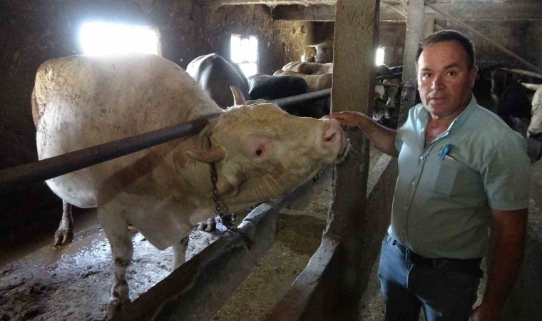 Kurban Bayramı’nın yaklaşmasıyla birlikte Çanakkale genelinde kurbanlıklar görücüye çıkmaya başladı. Ayvacık ilçesine bağlı Paşaköy köyünde, 37 yıldır büyükbaş hayvan yetiştiriciliği yapan Hasan Yavaş’ın (55) 4 yaşındaki simental cinsi 4 yaşındaki boğa 1 ton 800 kilograma ulaştı. Baba mesleği olan büyükbaş hayvan yetiştiriciliğini devam ettiren Hasan Yavaş, Kurban Bayramı öncesinde 1 ton 800 kilogram ağırlığındaki boğa 340 bin TL’den satışa çıkardı. Fiyatı adeta ikinci el otomobiller ile yarışan boğa, günlük 15 kilo buğday, arpa, mısır ve fabrika yemi tüketiyor.