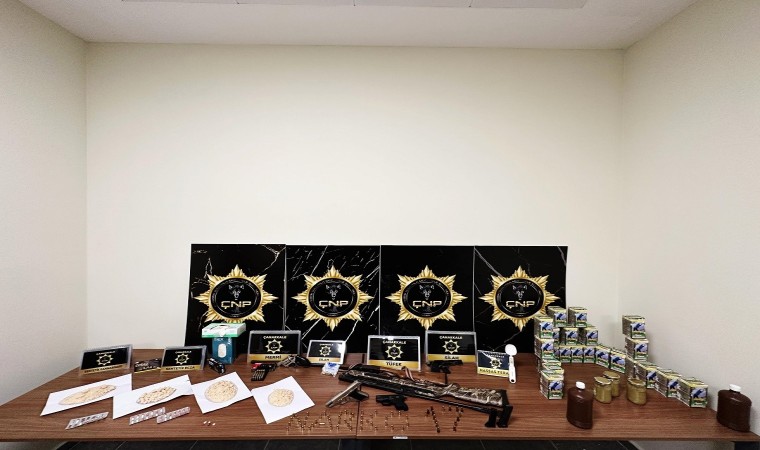 Şüphelilerden 546,98 gram sentetik cannabinoid hammaddesi, 34 sentetik ecza, 1,56 gram skunk, 1 hassas terazi, uyuşturucu madde imalatında kullanıldığı değerlendirilen 2.880 gram ağırlığında madde, uyuşturucu imalatında kullanıldığı değerlendirilen 2 litre aseton, 4 silah 202 mermi ve 2 av tüfeği ele geçirildi. Emniyetteki işlemlerinin ardından 10 şüpheliden 1’i ifadesinin ardından serbest bırakıldı. 9 şüpheli ise işlemlerinin ardından adliyeye sevk edildi.