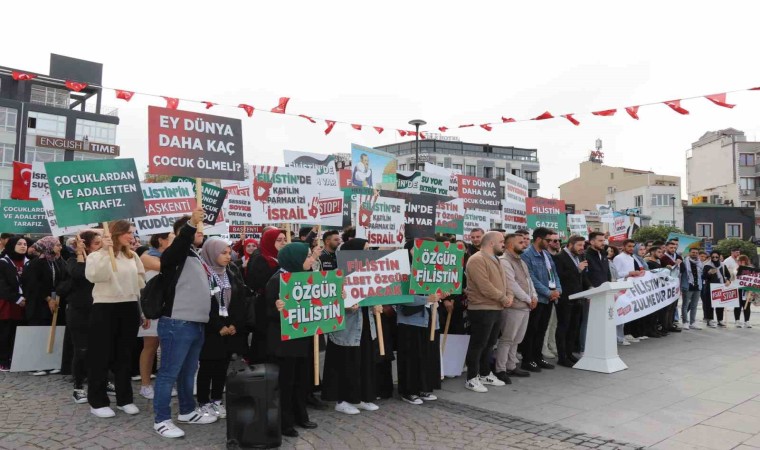 AK Parti Gençlik Kolları Başkanı Alperen Uysal tarafından iskele meydanında düzenlenen basın açıklamasında, “Bugün burada Gazze’den günlerdir yükselen acı feryatlara, akan onca masum kana, dökülen gözyaşlarına seyirci kalamayan; mazlum ve masum coğrafyalar için her fırsatta hakkı ve hakikati haykıran Ak Parti Çanakkale İl Gençlik Kolları Başkanlığı olarak #SayStop demek üzere toplanmış bulunmaktayız. 1948 Yılından bu yana devam eden çatışmaların kronikleşmiş bir hal aldığı Filistin’de; katil İsrail 7 Ekimden bugüne küresel vicdanı derinden yaralayan, çok sayıda sivil can kaybının yaşandığı yeni bir çatışma ortamı oluşturmuştur. Her karış toprağının yoğun bombardımana tabi tutulduğu, orantısız gücün, savaşlarda dahi kullanımı yasak olan fosfor bombalarının kullanıldığı, en temel insan haklarının dahi hiçe sayıldığı, insanlık onurunun ayaklar altına alındığı Filistin’de, İsrail tarihe bir kez daha adını kara leke ile yazdırmıştır. Gazze’deki yaşlı, çocuk, kadın her bir sivilin su ve gıda dahil temel ihtiyaçları edinmelerini bile engelleyen zalim İsrail’in bu gaddarlıkları karşısında ne yazık ki sözde insan hakları savunucuları sus pus olmuş hatta kimileri İsrail’e destek için sıraya gelmiştir. Saldırılarının ilk anından itibaren Cumhurbaşkanımız Recep Tayyip Erdoğan tarafından kendilerine itidal çağrısında bulunulan, sükûnete ve bu zalimliği sona erdirmeye çağrılan; bunun dışında aranan her yolun ve hevesin peşinde koşulmasının sadece daha fazla yıkıma, daha fazla gözyaşına ve daha fazla can kaybına sebep olacağı kendisine hatırlatılan İsrail, ne yazık ki tüm bu çağrılara daha fazla masum kanı dökerek yanıt vermiştir. 41 km uzunluğu 10 km genişliğinde bir alanda 2 milyonun insanın yaşadığı, İsrail tarafından açık hava hapishanesine çevrilen Gazze’de bugün dahi hastaneler bombalanmaya devam etmekte ve Netanyahu Hükümeti soykırım suçu işlemektedir. Savaş hukuku, insan hakları ihlal ediliyor, uluslararası hukuk tanınmıyor ve tüm bunlar Dünyanın gözü önünde yapılıyor. Bu durum, İsrail’in gerek bugün gerekse yarın insanlık için hem bölgesel hem de küresel bir tehdit olduğunu ortaya koymaktadır. Bugünde, burada olduğu gibi 81 ilimizin tamamında eş zamanlı olarak AK Parti Gençlik Kolları mensupları olarak, Bugün Gazze’de soykırıma dur de, Bugün Gazze’deki vahşete dur de, Bugün Gazze’deki zulme dur de, Bugün Gazze’de yaşanan insanlık suçlarına dur de, Bugün İsrail’e dur de Diyerek haykırıyoruz ve #SayStop demeye devam ediyoruz. Bu vatanın gençleri hem kültürü hem de uluslararası değerlere olan bağlılığın bir sonucu olarak Gazze’de yapılan insan hakları ihlallerinin dimdik karşısındadır. Altını çizerek tekrar ifade ediyoruz; Bugün Anadolu’nun her bir köşesinde milyonlarca genç Gazze’de yavrusunun cenazesini kucağına almış bir annenin yüreğindeki sızıyı en derinden hissetmekte, bu zulme katkı sunan kim varsa hesabını tutmaktadır. Türkiye’nin ötesinde, bölgenin en büyük gençlik hareketi olan Ak Gençlik olarak Daha Adil Bir Dünya diyerek yola çıkan Cumhurbaşkanımızın izinde; her zaman mazlumların savunucusu olduğumuzu, insanlık ve hukuk bilmez canilerin karşısında olacağımızı belirterek #SayStop diyerek haykırıyoruz” denildi.