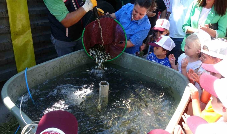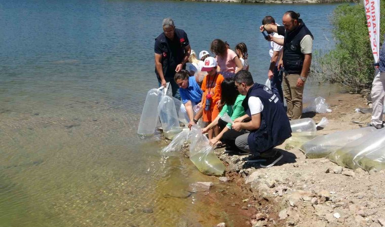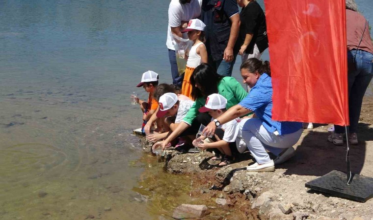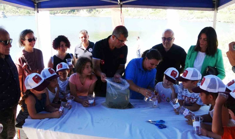 Çanakkale genelinde baraj ve göletlere, ’Su Kaynaklarının Balıklandırılması Projesi’ çerçevesinde 1 milyon 750 bin sazan balığı yavrusu bırakıldı. Öğrenciler de isim verdikleri balıkları bardak ile Atikhisar Barajı’na bıraktı.