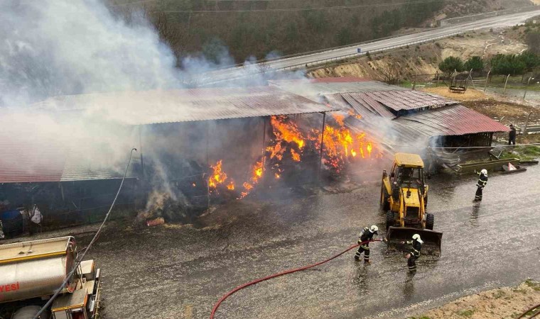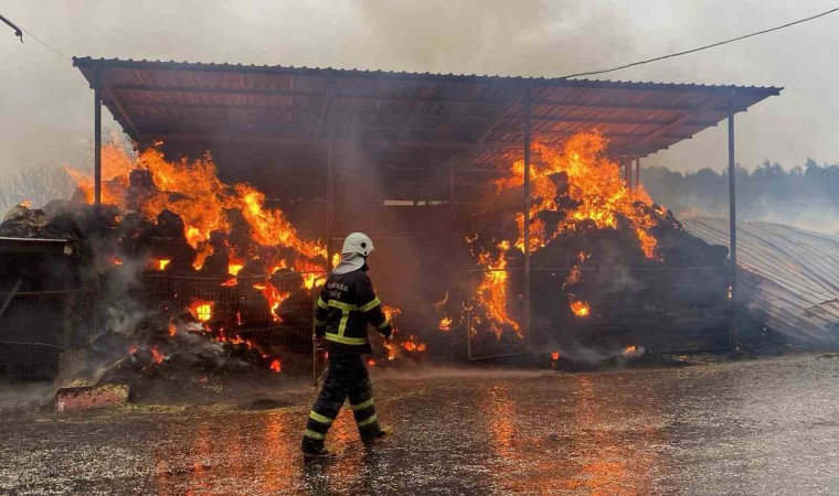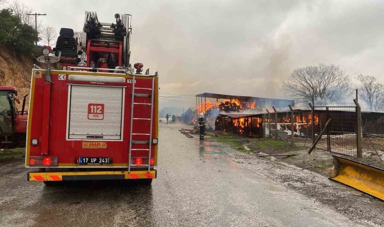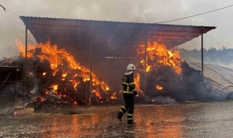Çanakkale Merkeze bağlı Kirazlı köyü Balaban mevkiinde dama yıldırım düşmesi sonucu 2 bin balya saman alev alev yandı.
